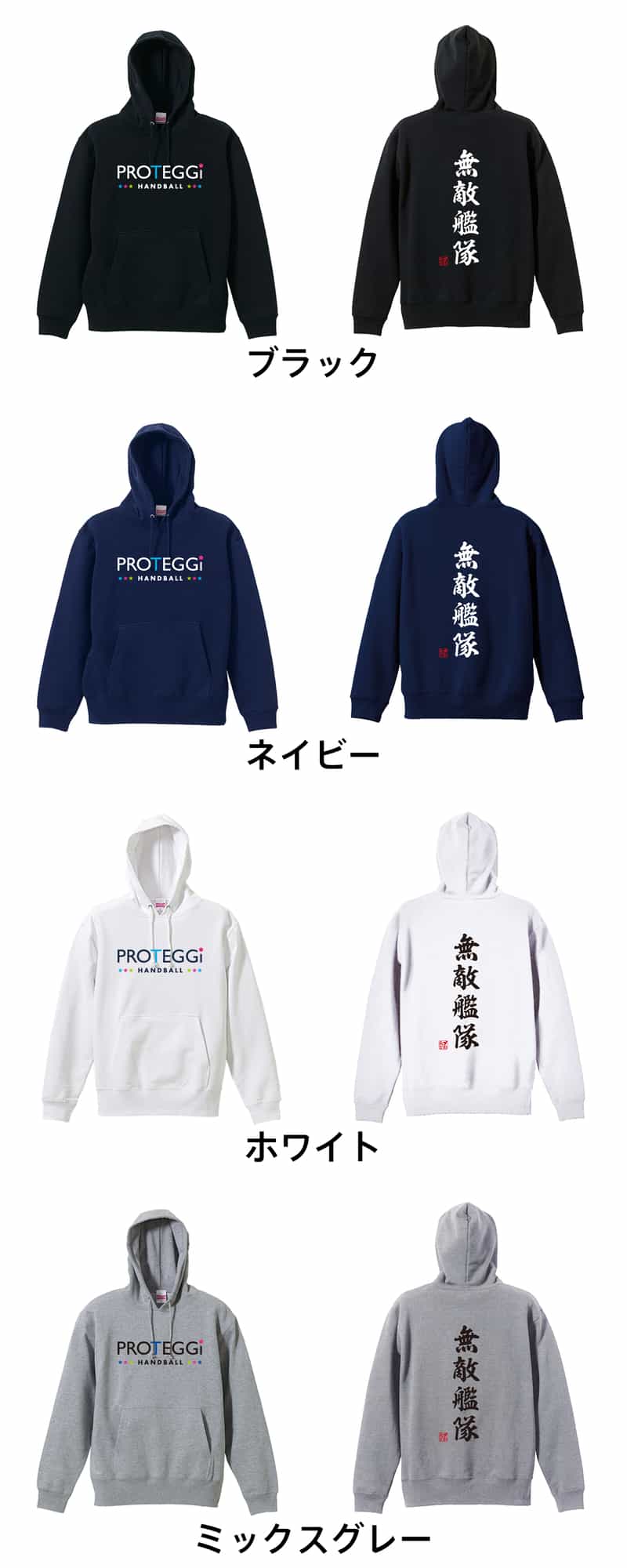 無敵艦隊 昭和楷書体 縦書き パーカー プルオーバー 裏パイル 練習着 [PTG0083-PP-PIL]