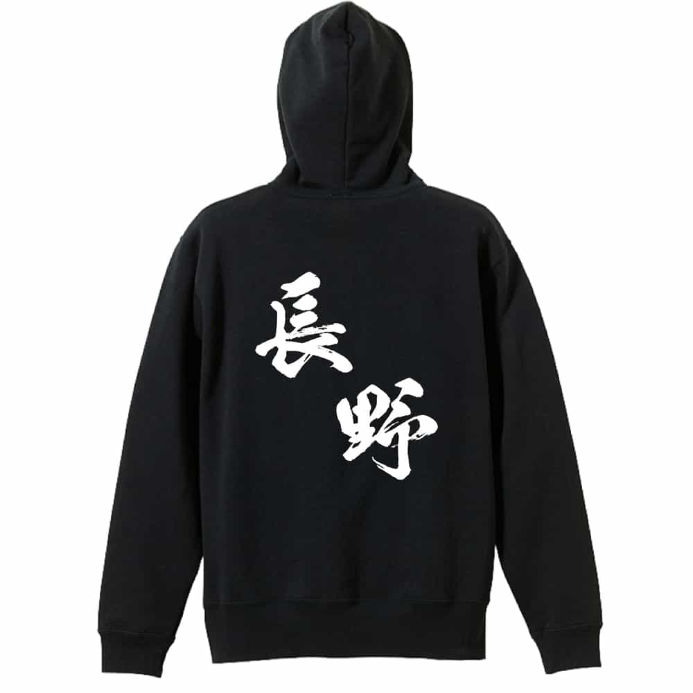 都道府県デザイン 長野 闘龍書体 斜め書き パーカー プルオーバー 裏パイル 練習着