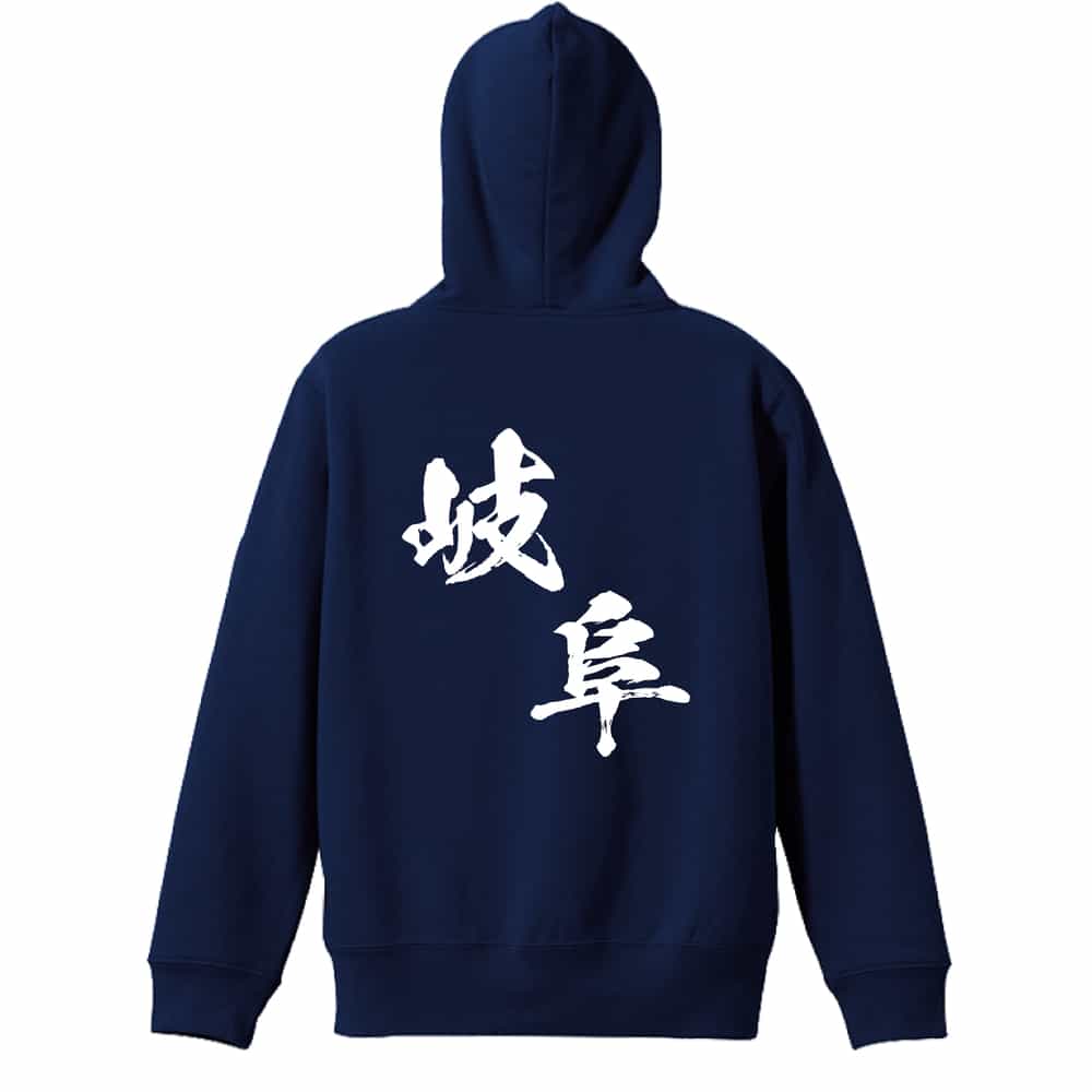 都道府県デザイン 岐阜 闘龍書体 斜め書き パーカー ジップ 裏パイル 練習着